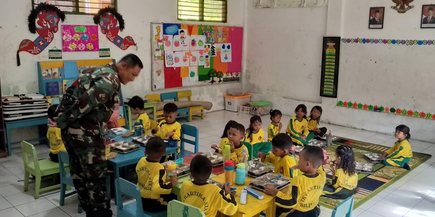 Babinsa Kelurahan Sunyaragi Lakukan Monitoring dan Pendampingan Pendistribusian MBG