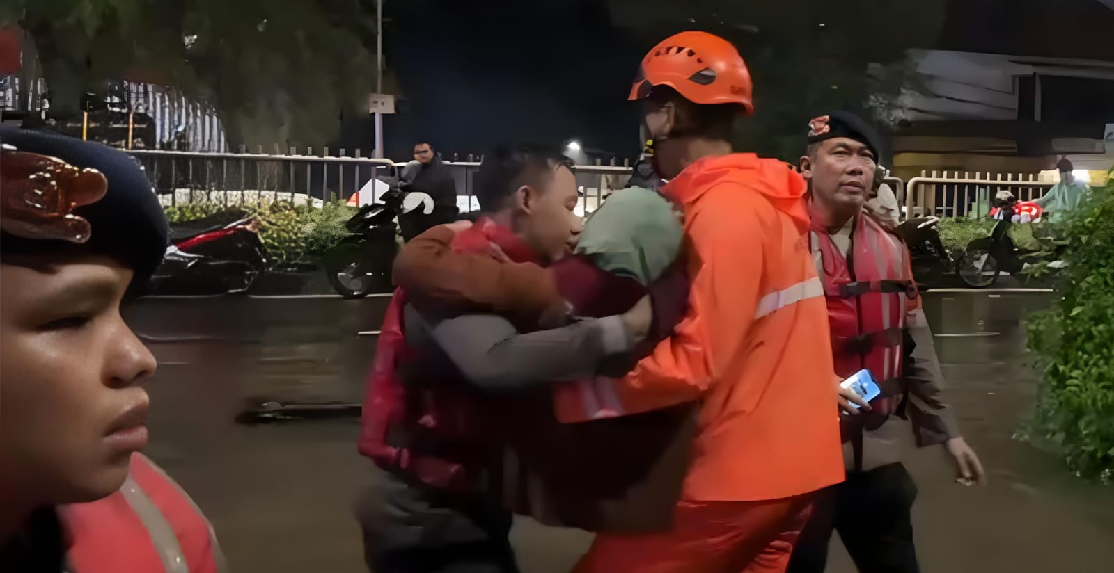 Di tengah kondisi tersebut, personel Brimob mengevakuasi seorang warga lanjut usia pada pukul 03.30 WIB. Lansia bernama Ibu Sulis (84) dipindahkan dari rumahnya yang terdampak banjir dan diantar menuju kediaman kerabatnya agar dapat beristirahat di tempat yang lebih aman.
