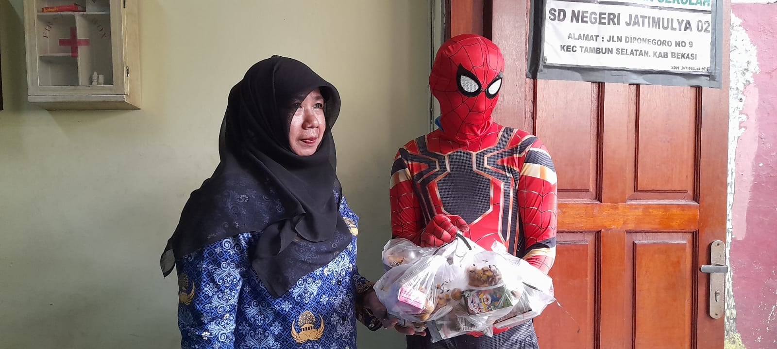 “Ih, lucu banget ada Spiderman,” teriak sejumlah siswa.