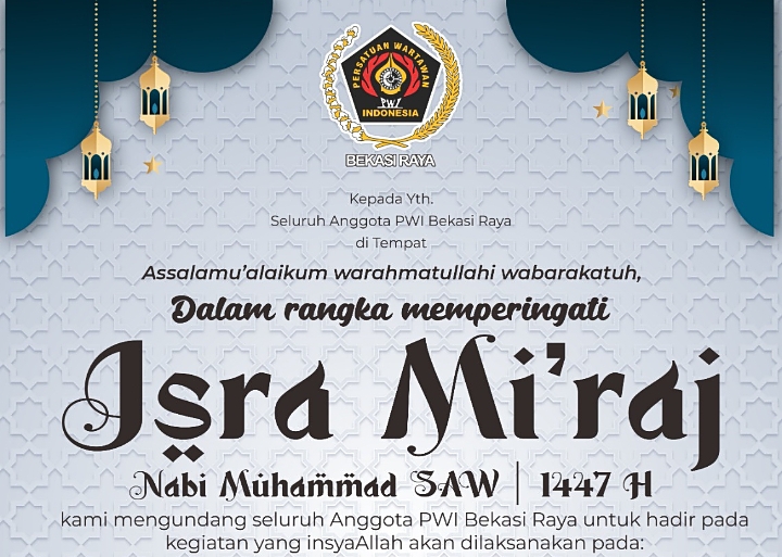 Bekasi – Persatuan Wartawan Indonesia (PWI) Bekasi Raya akan menyelenggarakan peringatan Isra Mi’raj Nabi Muhammad SAW 1447 Hijriah/2026 Masehi. Kegiatan keagamaan ini menjadi