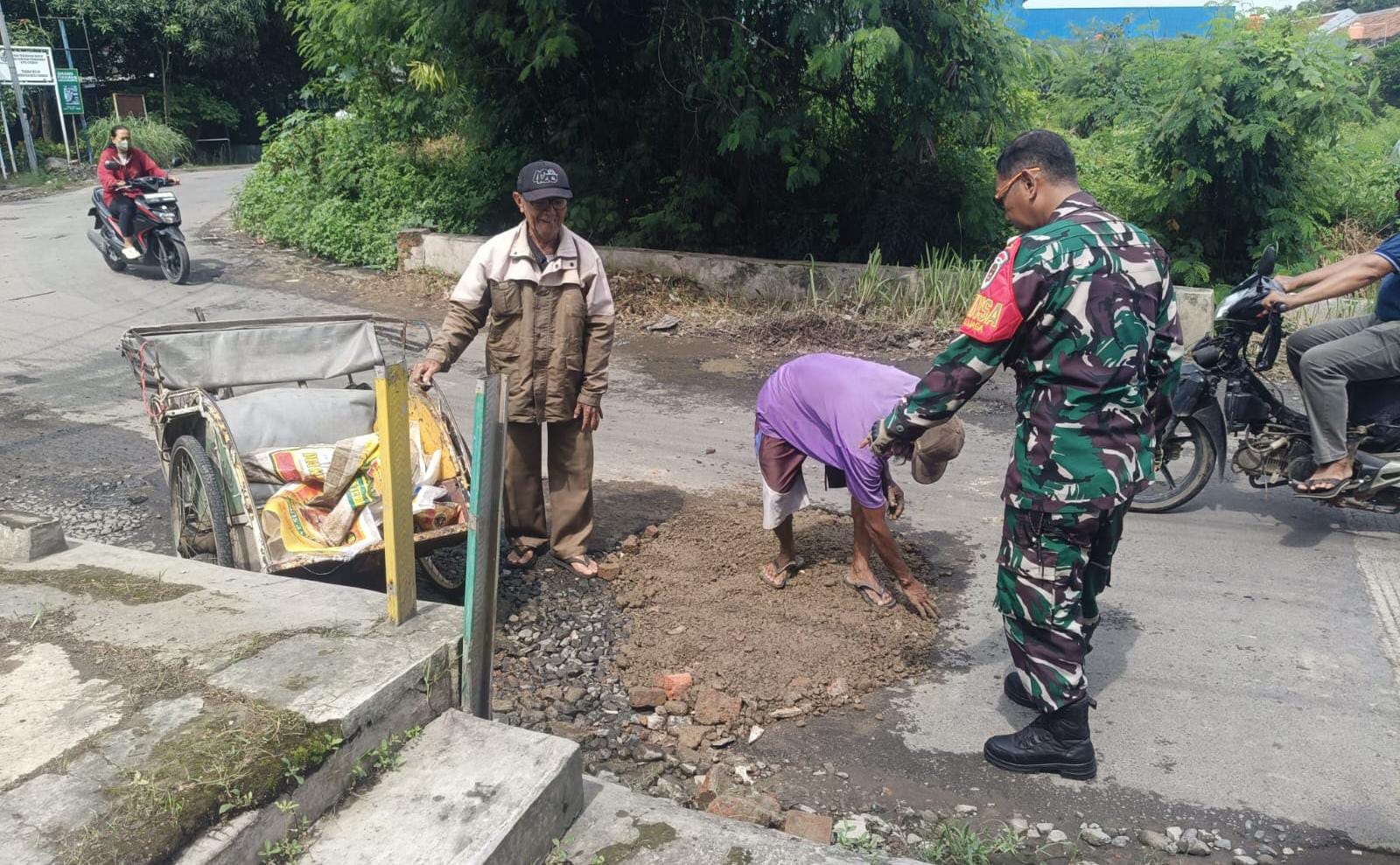 Dalam kegiatan tersebut, Babinsa bersama warga secara gotong royong menambal lubang-lubang jalan menggunakan material seadanya agar permukaan jalan kembali rata dan aman dilalui. Upaya ini dilakukan sebagai langkah sementara untuk mencegah terjadinya kecelakaan lalu lintas dan memperlancar arus kendaraan warga.
