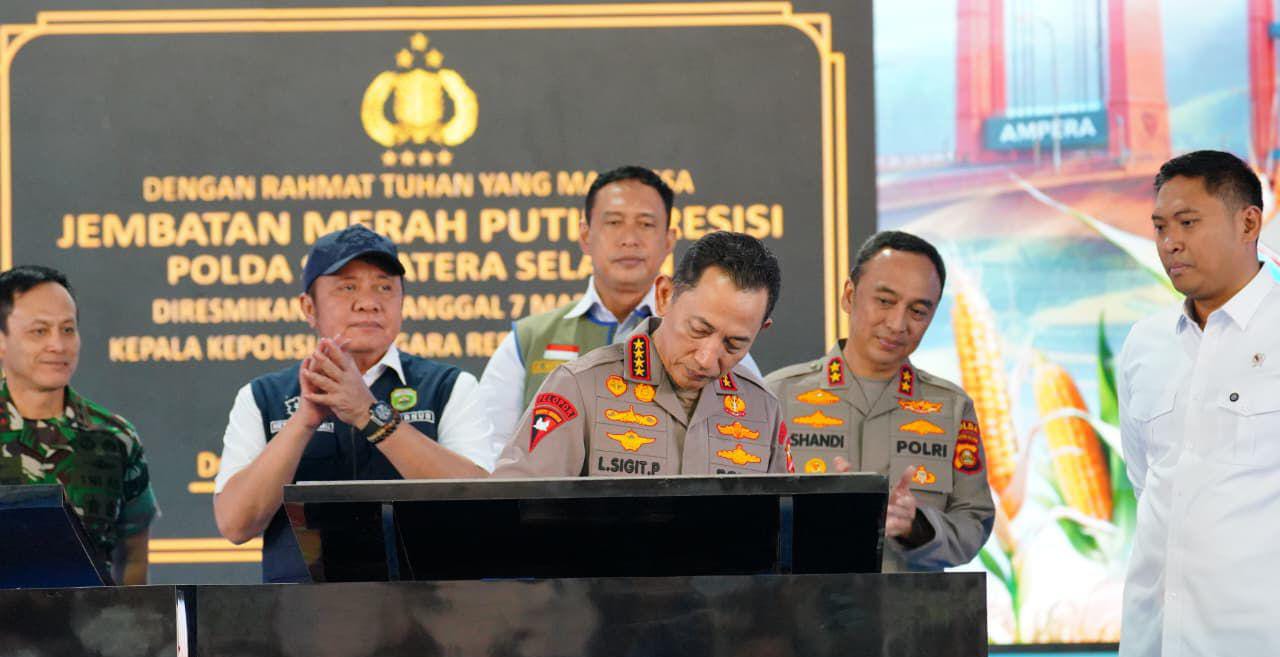 Halo Bekasi; Sumsel – Kapolri Jenderal Listyo Sigit Prabowo meresmikan 57 jembatan merah putih Presisi di wilayah Sumatera Selatan (Sumsel). Hal ini menindaklanjuti instruksi Presiden Prabowo untuk kemaslahatan masyarakat.