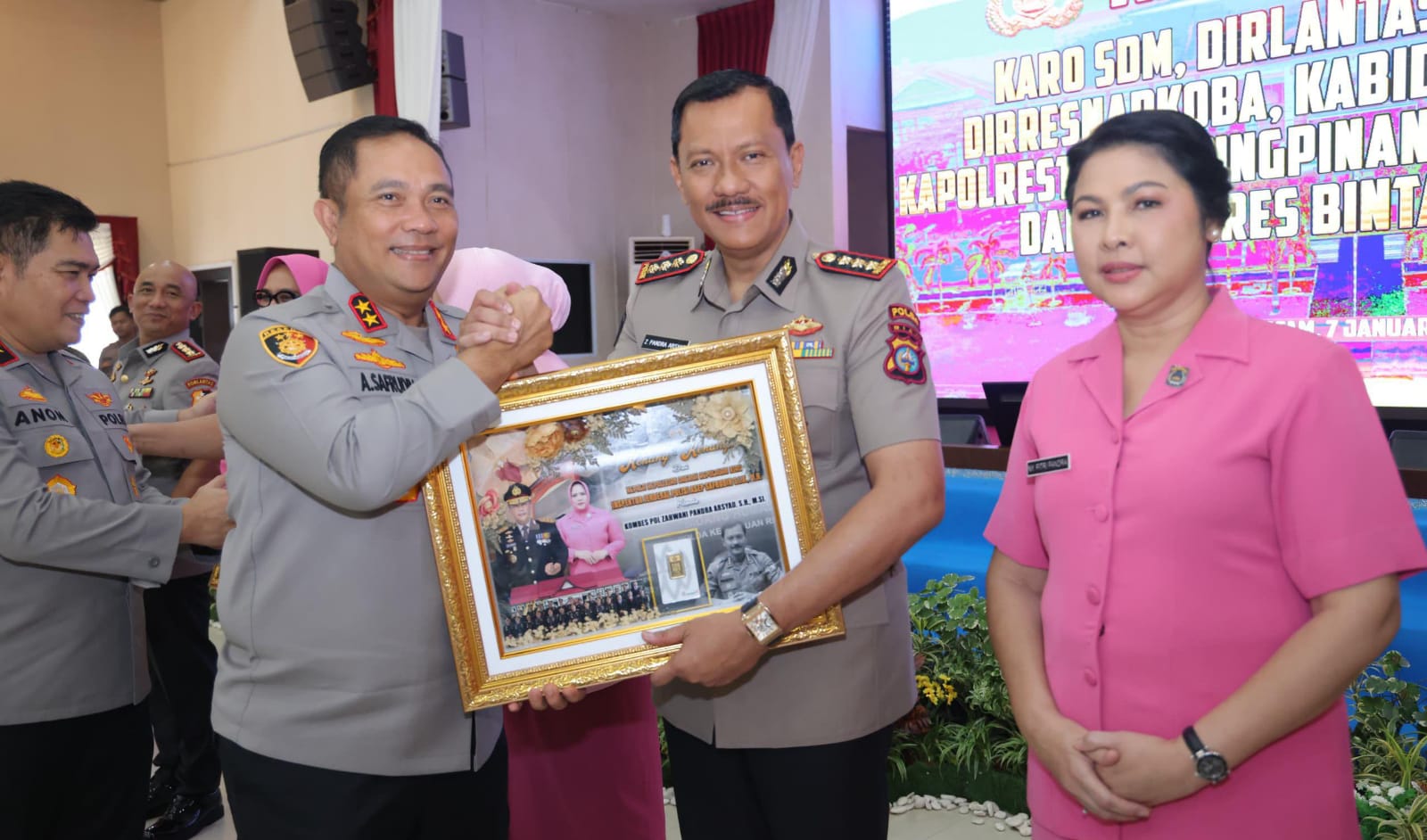 Batam – Polda Kepri menggelar kegiatan Kenal Pamit Pejabat Utama Polda Kepri usai melaksanakan upacara serah terima jabatan (sertijab) yang berlangsung di Gedung Lancang Kuning Polda Kepri sebagai momentum penguatan soliditas organisasi dan kesinambungan estafet kepemimpinan, Rabu (7/1/2026).