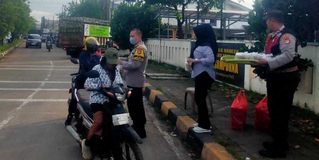 Halo Bekasi: Kota Bekasi – Polsek Jatisampurna, Polres Metro Bekasi Kota, melaksanakan kegiatan pembagian takjil Ramadhan 1447 H / 2026 H kepada masyarakat yang sedang melintas di depan Mapolsek Jatisampurna, pada Selasa (3/3/2026).