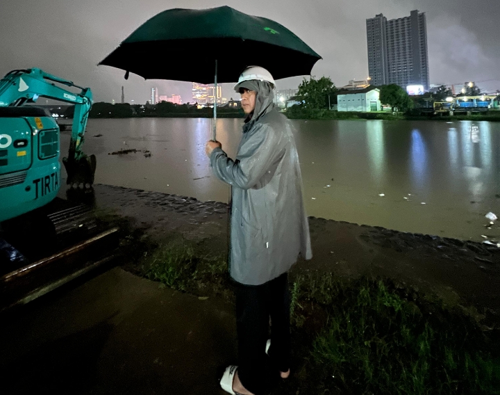 Curah Hujan Tinggi, Tri Adhianto Pantau Langsung Debit Air di Pintu Air Prisdo