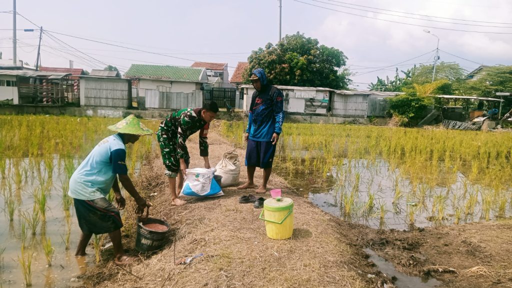 Blitar – Babinsa Desa Slumbung Koramil 0808/15 Gandusari Kopda Nurul Huda aktif mendampingi dan membantu petani dalam kegiatan panen padi sebagai wujud dukungan terhadap