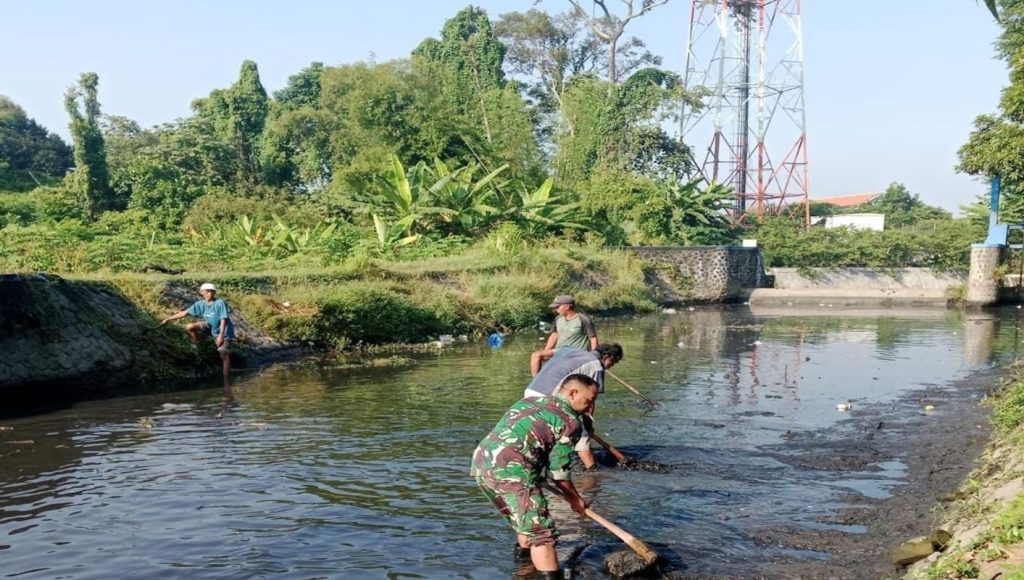Blitar – Babinsa Kelurahan Karangsari Koramil 0808/01 Sukorejo Serda Yohanes Kefi bersama Kelompok Tani (Poktan) Margo Mulyo 1 melaksanakan kegiatan pembersihan sumber air