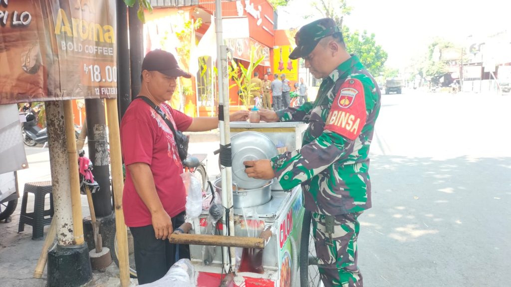 Sempatkan Waktu Senggang, Babinsa Kratonan Komsos Dengan Penjual Es Balok