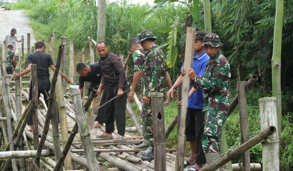 Babinsa Lakukan Pengecekan dan Pengukuran Jembatan Rawan Saat Musim Hujan