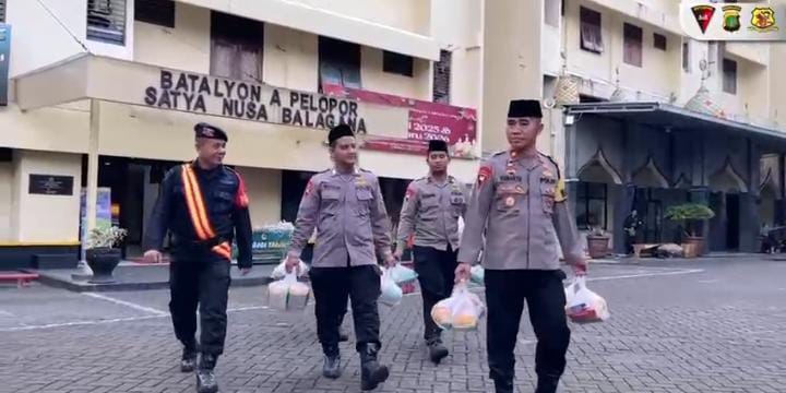 Halo Bekasi: Jakarta – Batalyon A Pelopor Satbrimob Polda Metro Jaya berbagi takjil kepada masyarakat di depan Mako Satbrimob Polda Metro Jaya, Selasa