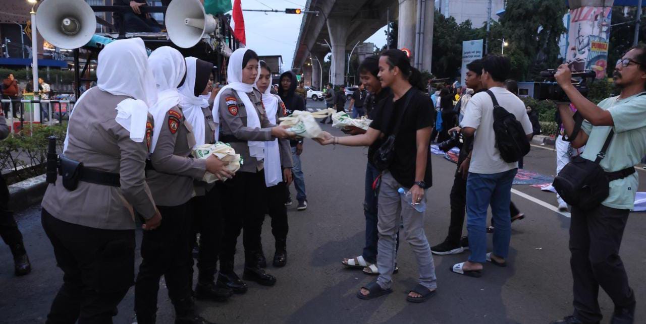 Halo Bekasi; JAKARTA – Pemandangan berbeda terlihat dalam pengamanan penyampaian aspirasi oleh kelompok mahasiswa di depan Mabes Polri, Jumat (27/2). Memasuki bulan suci Ramadhan, Polda Metro Jaya menerapkan pola pengamanan progresif yang jauh dari kesan kaku. Alih-alih barikade yang intimidatif, para personel yang bertugas justru tampil religius dengan mengenakan peci dan syal bagi polisi laki-laki, serta jilbab bagi Polwan, sebagai bentuk penghormatan terhadap kekhidmatan bulan puasa.